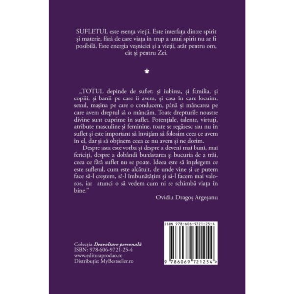 Despre asta este vorba și despre a deveni mai buni, mai fericiți, despre a dobândi bunăstarea și bucuria de a trăi, ceea ce fără suflet nu se poate. Ideea este să înțelegem ce este sufletul, cum este alcătuit, de unde vine și ce putem face să-l creștem, să-l îmbunătățim și să-l facem mai valoros, iar atunci o să vedem cum ni se schimbă viața în bine.