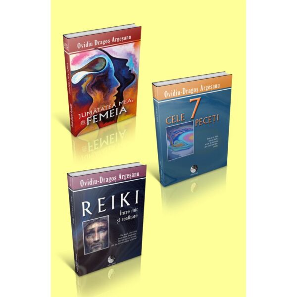 Elementele necesare practicantului Reiki: Ghidul, Taina și Iubirea. Trei cărți care stimulează dezvoltarea personală și zdruncină încartiruirile. Pachetul conține titlurile Reiki, între mit și realitate, Cele șapte peceți și Jumătatea mea, femeia.