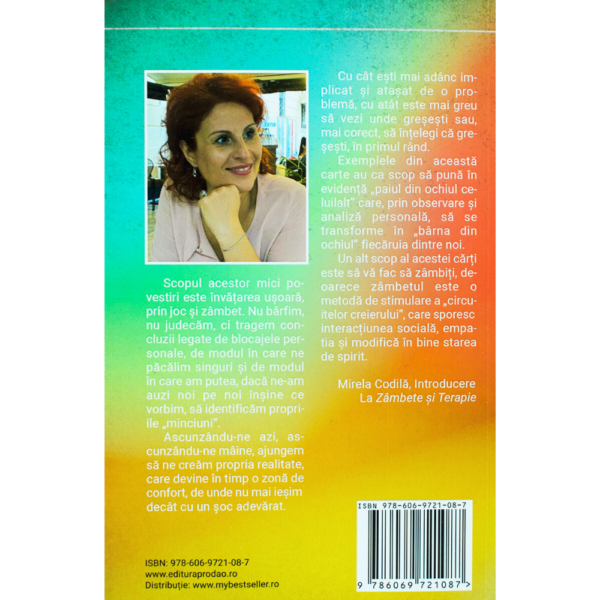 În spatele fiecărui simplu zâmbet se află o întreagă lume, iar cartea „Zâmbete și terapie”, a autoarei Mirela Codilă, și-a propus să o exploreze. Această lectură nu este doar o colecție de povești, ci reprezintă un ghid profund de auto-reflecție și introspecție. Fiecare poveste relatată cu mult optimism de Mirela Codilă te invită să explorezi modurile în care comunicăm cu noi înșine și să identifici „minciunile” personale care ne formează realitatea.
